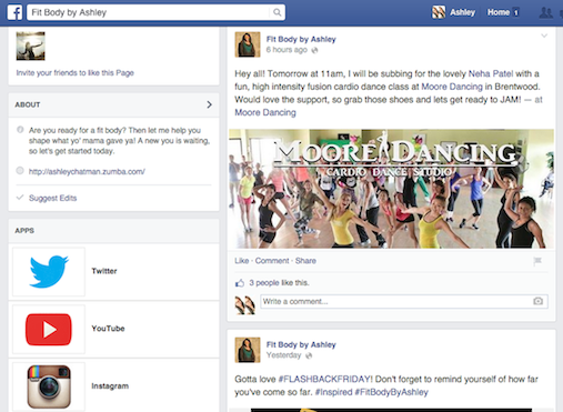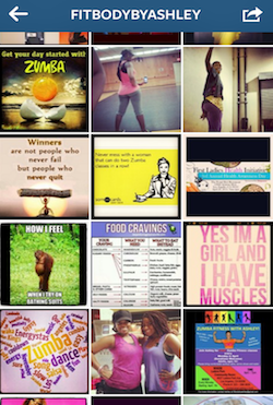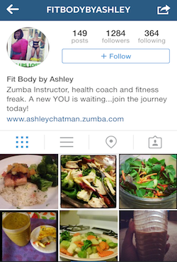 Like Facebook, Ashley uses Instagram to motivate her students. Except here, it's a little more personal. Each day she photographs her meals whether it's breakfast or a snack before dinner. This way she can be an encouragement to her followers while leading by example. Ashley says apps like Instagram "allows people a more convenient way to stay updated on what's happening and they're able to see progress or results without having to physically be in the room. By uploading candids of herself and students during her fitness classes and captioning the location, Ashley can provide followers with a visual so inviting that it would get followers to come join the party.